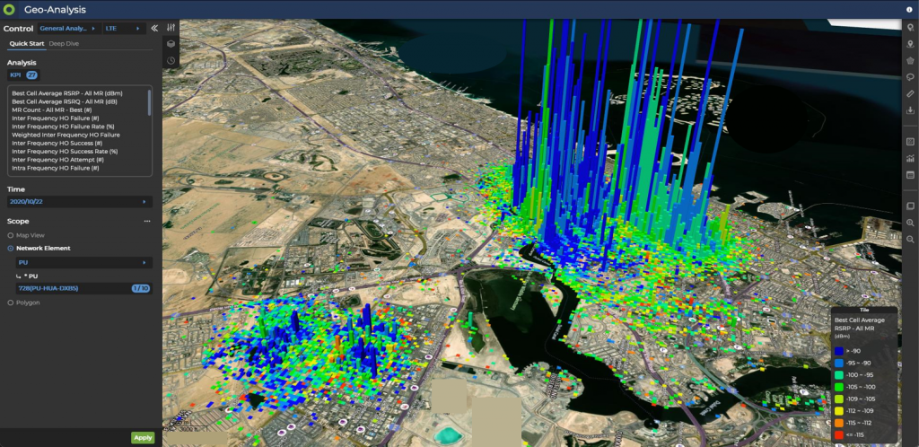 現觀科技CovMo行動網路優化定位平台以即時立體圖像呈現各區網路KPI指標